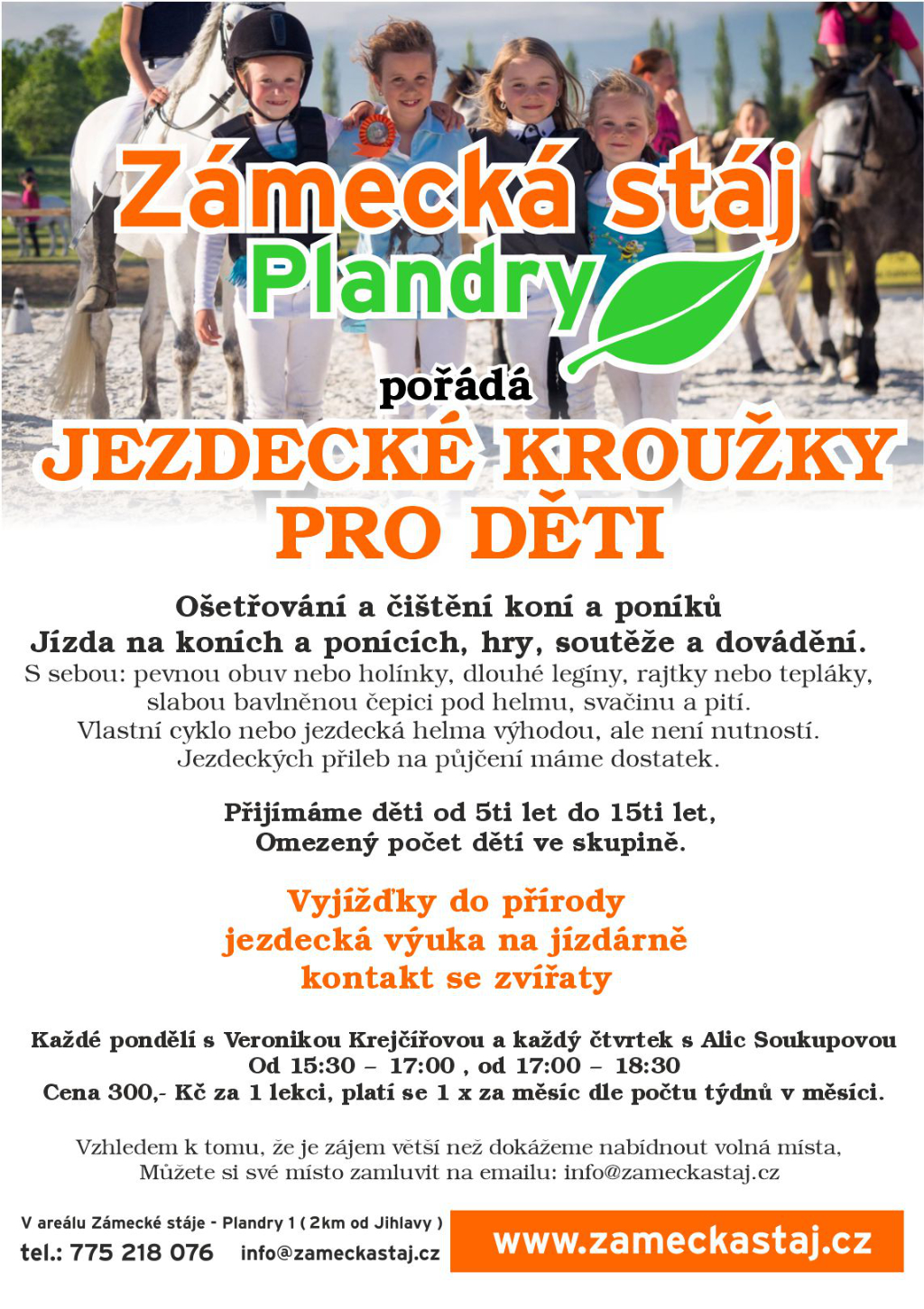 Jezdecký kroužek opět otvírá své brány od září a to každou středu od 15:30-17:30 a druhá skupina každý čtvrtek od 15:30-17:30